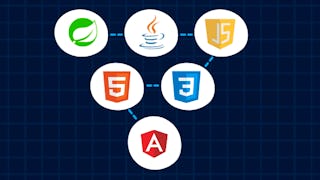 Skills you'll gain: Angular, Web Applications, HTML and CSS, Web Development, Eclipse (Software), JavaScript Frameworks, Spring Boot, Object Oriented Programming (OOP), Restful API, Java Programming, Model View Controller, Object Oriented Design, Hypertext Markup Language (HTML), Front-End Web Development, Software Development Tools, Spring Framework, Java, Web Services, Javascript, Integrated Development Environments